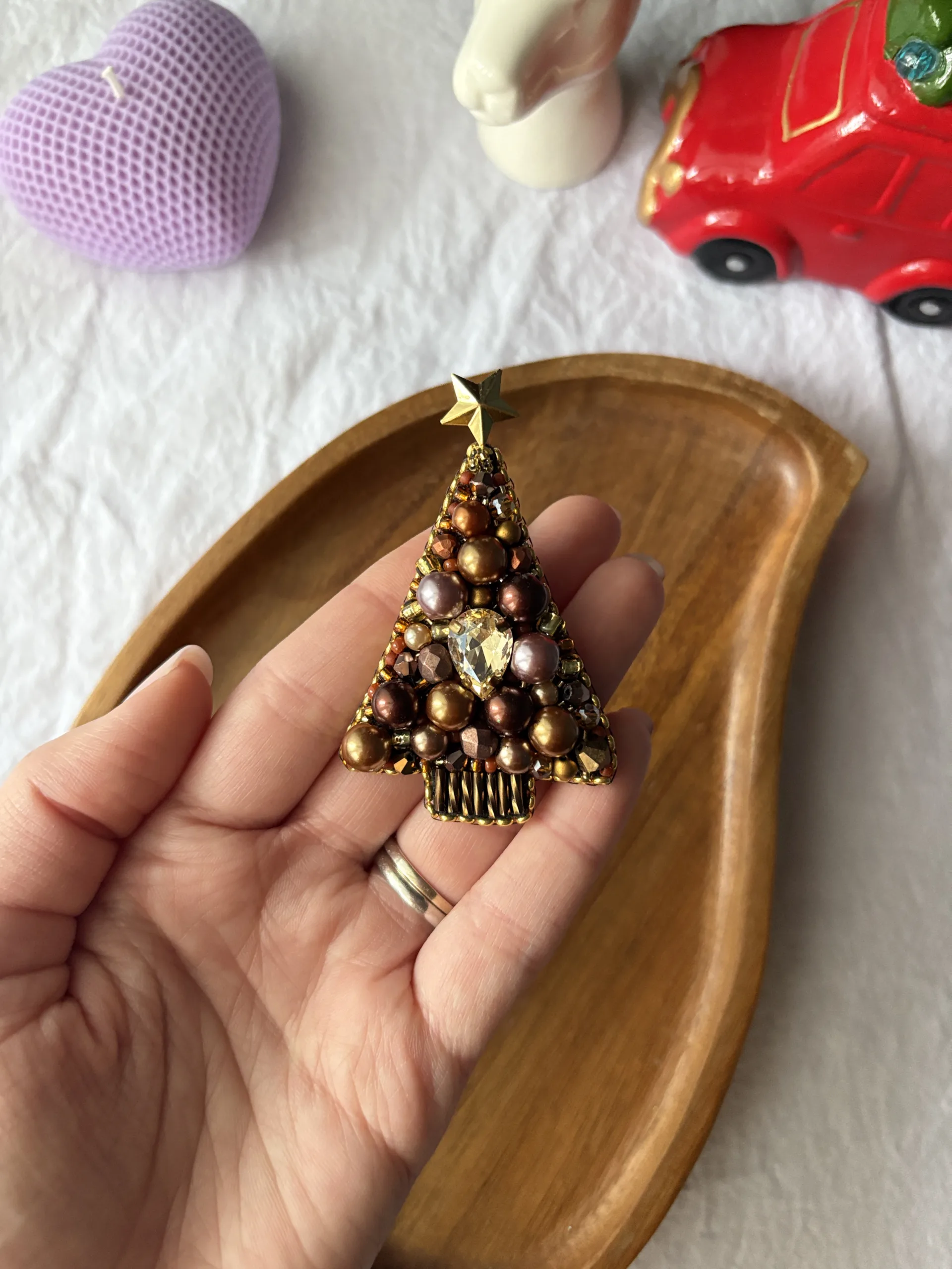 Materiale: fetru, perle sticlă, cristale stică, fire polish, stea oțel inoxidabil, tuburi sticlă, toho, șirag cristale sticlă, ac broșă oțel inoxidabil, piele ecologică