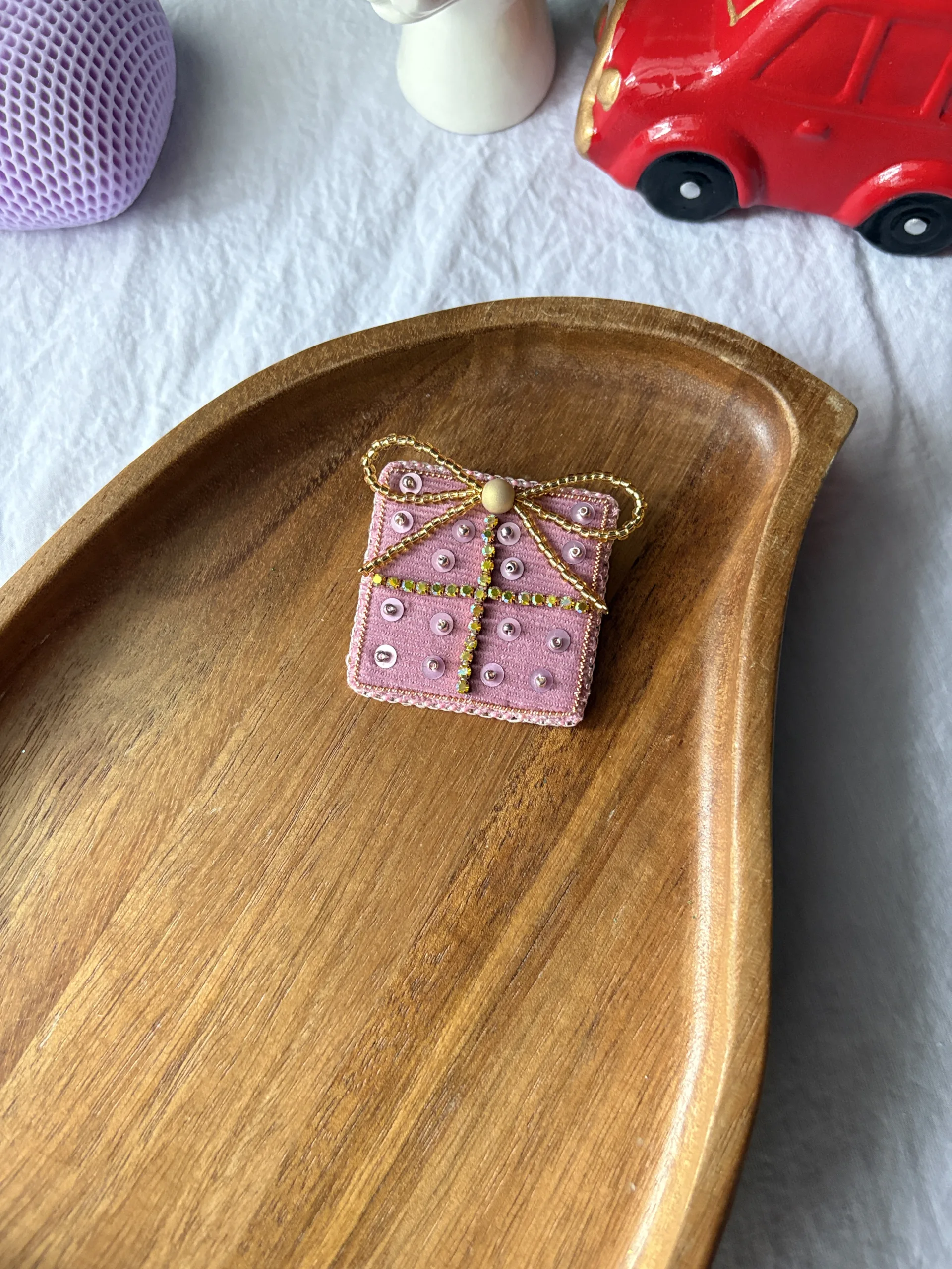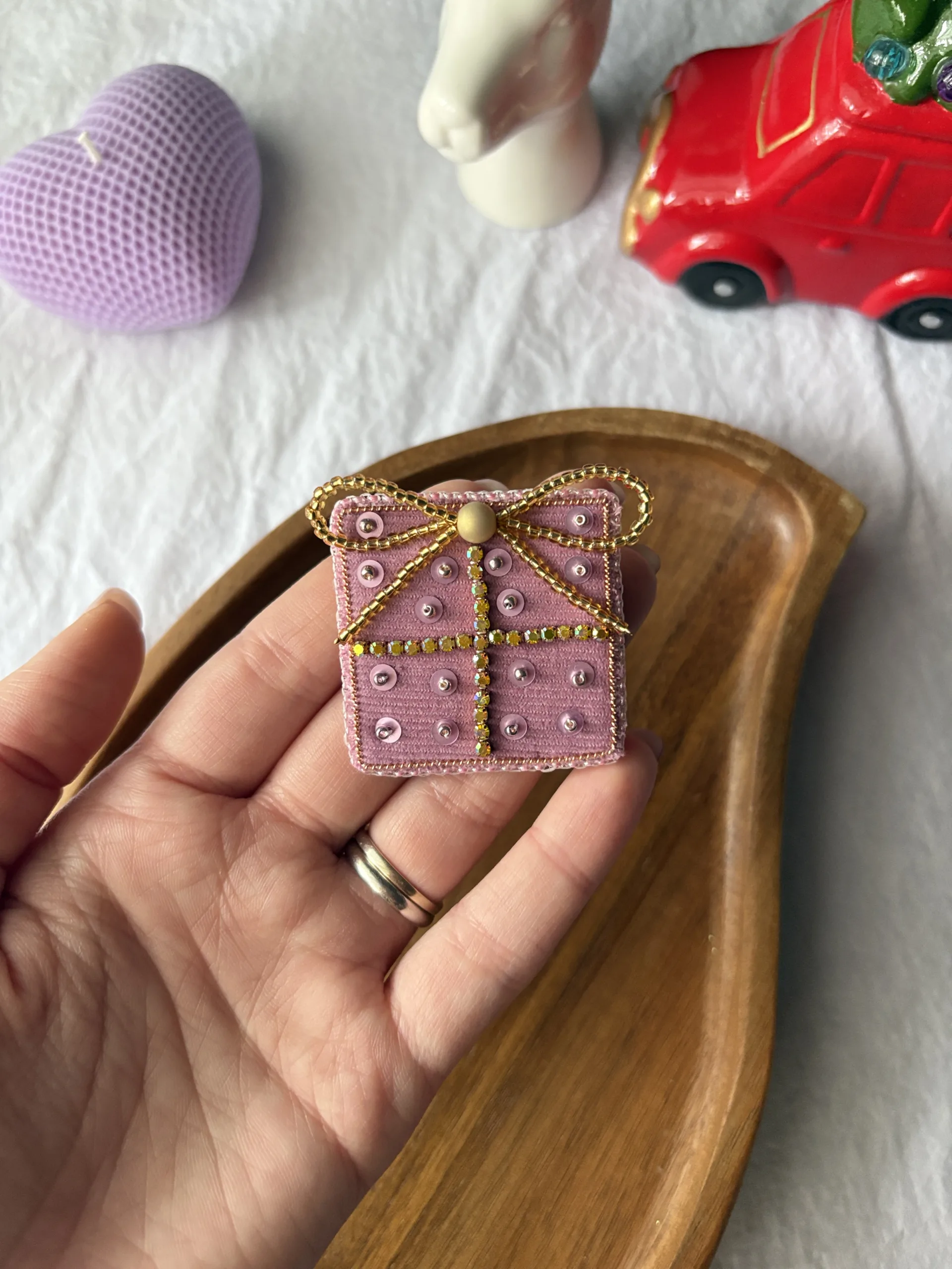 Materiale: catifea, paiete, cristale sticlă, toho, ac broșă oțel inoxidabil, piele ecologică