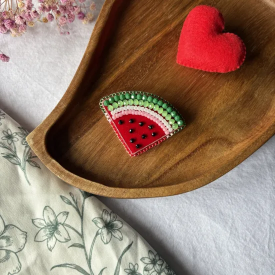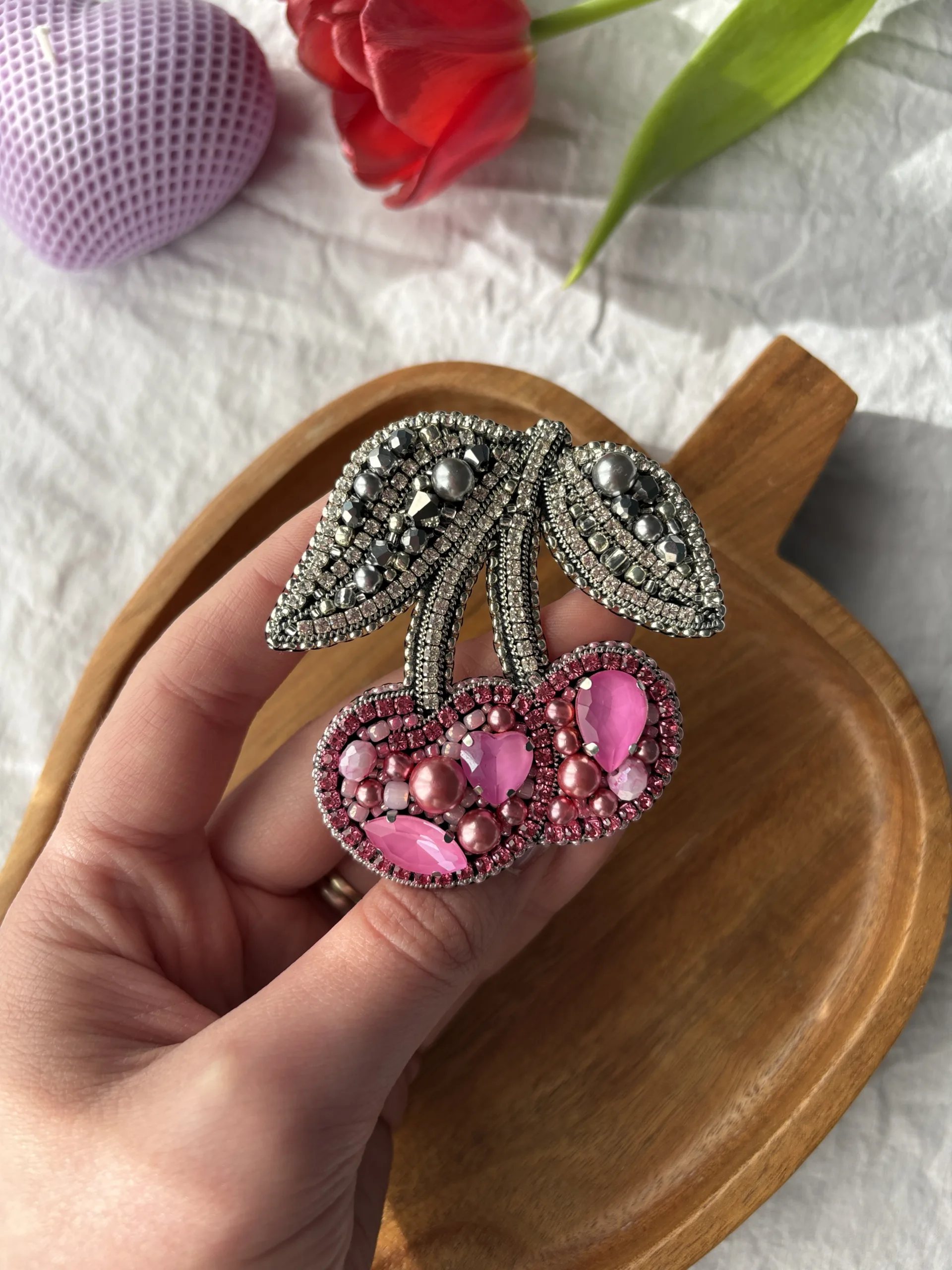 Materiale: fetru, cristale sticlă, mărgele toho, perle de sticlă, fire polish, ac broșă din oțel inoxidabil, piele ecologică.Broșa vine împachetată într-o cutiuță personalizată.