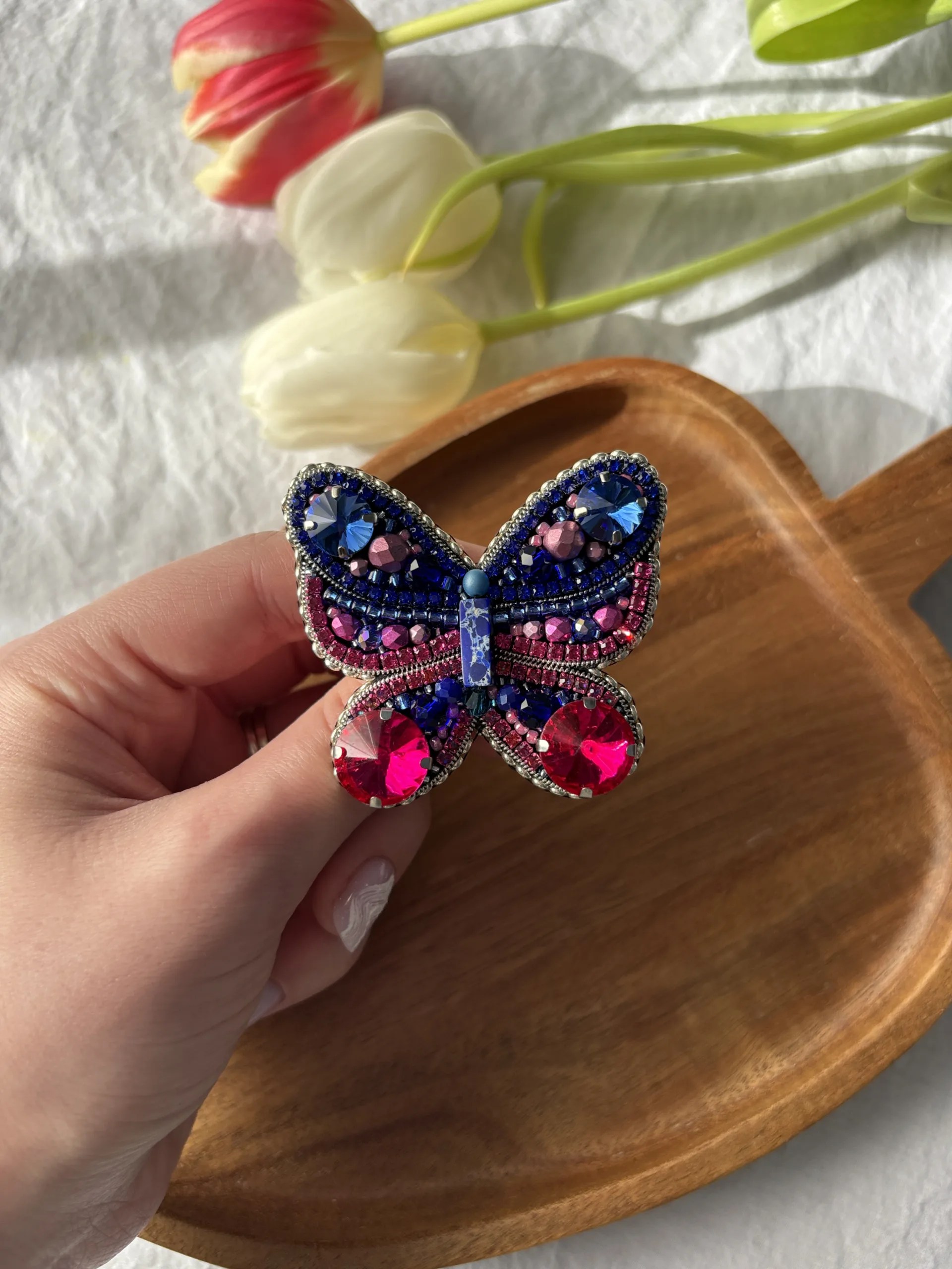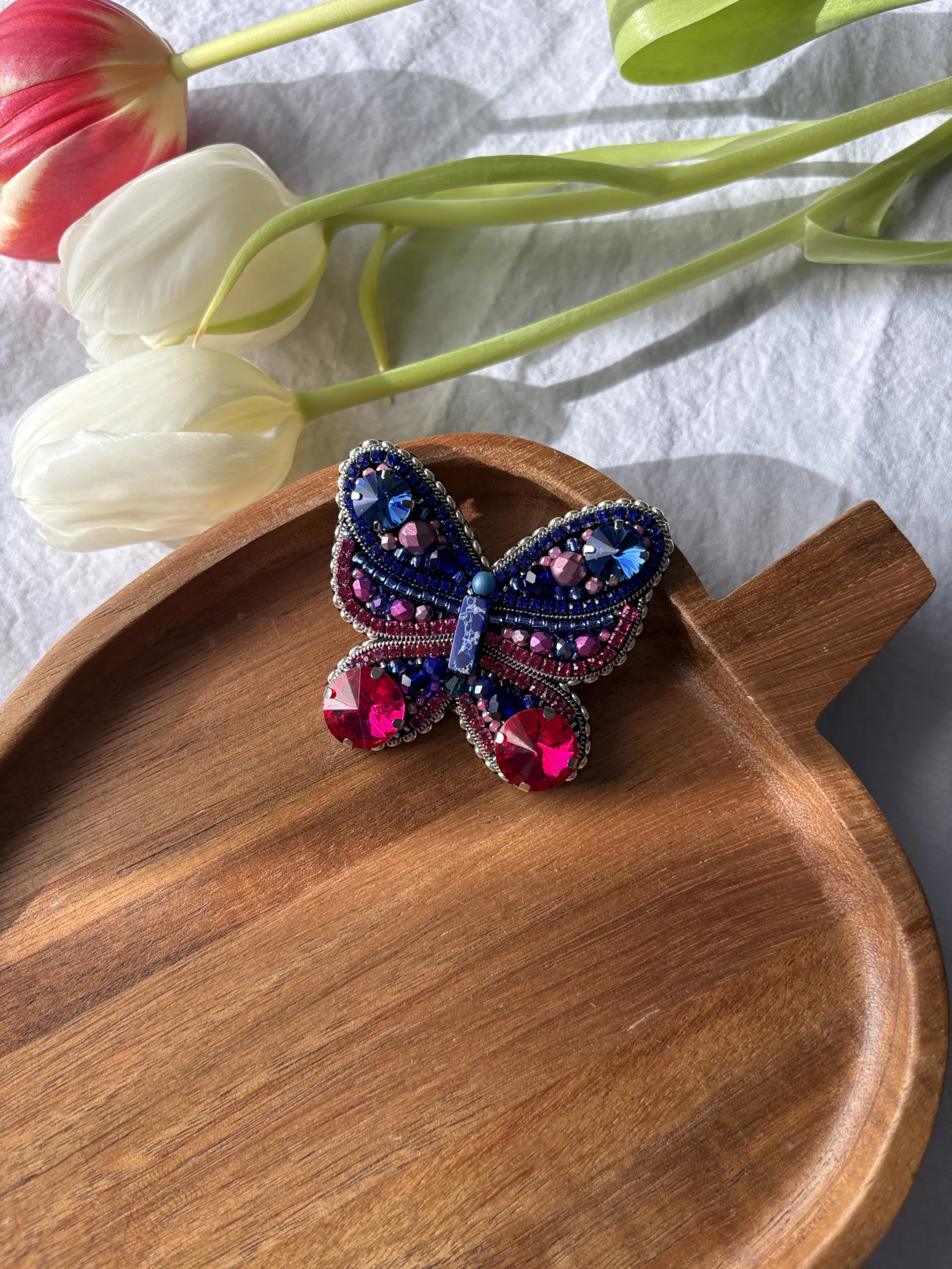 Materiale: fetru, cristale sticlă, mărgele toho, perle de sticlă, fire polish, ac broșă din oțel inoxidabil, piele ecologică.Broșa vine împachetată într-o cutiuță personalizată.