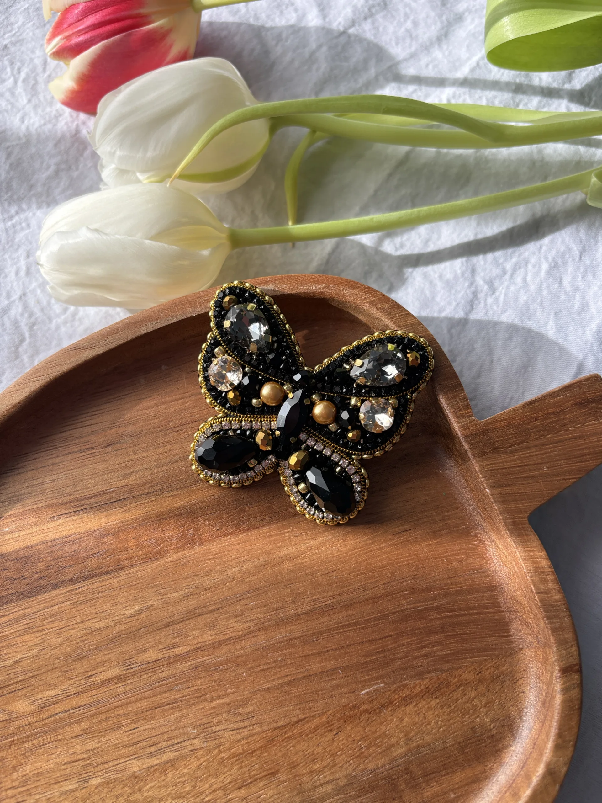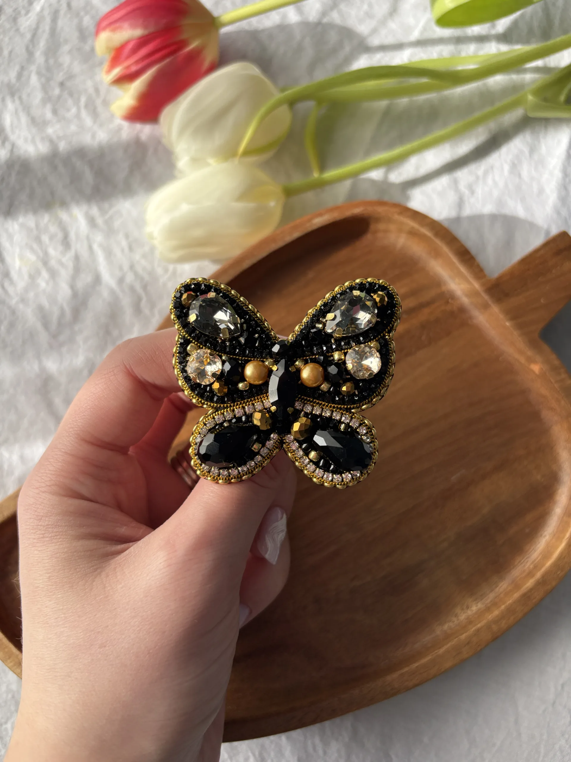 Broșă Fluture Negru-Auriu
