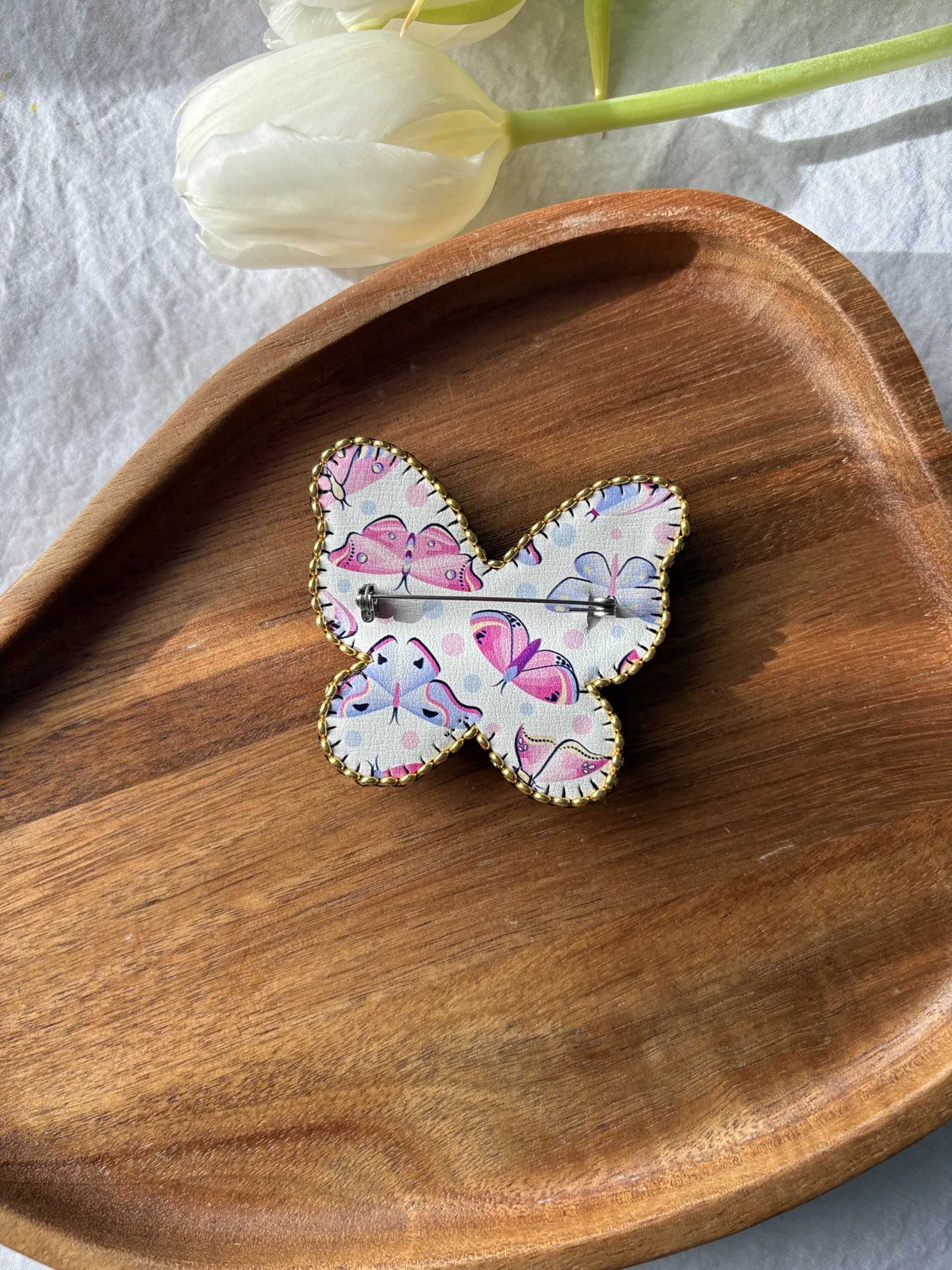 Materiale: fetru, cristale sticlă, mărgele toho, perle de sticlă, fire polish, ac broșă din oțel inoxidabil, piele ecologică.Broșa vine împachetată într-o cutiuță personalizată.