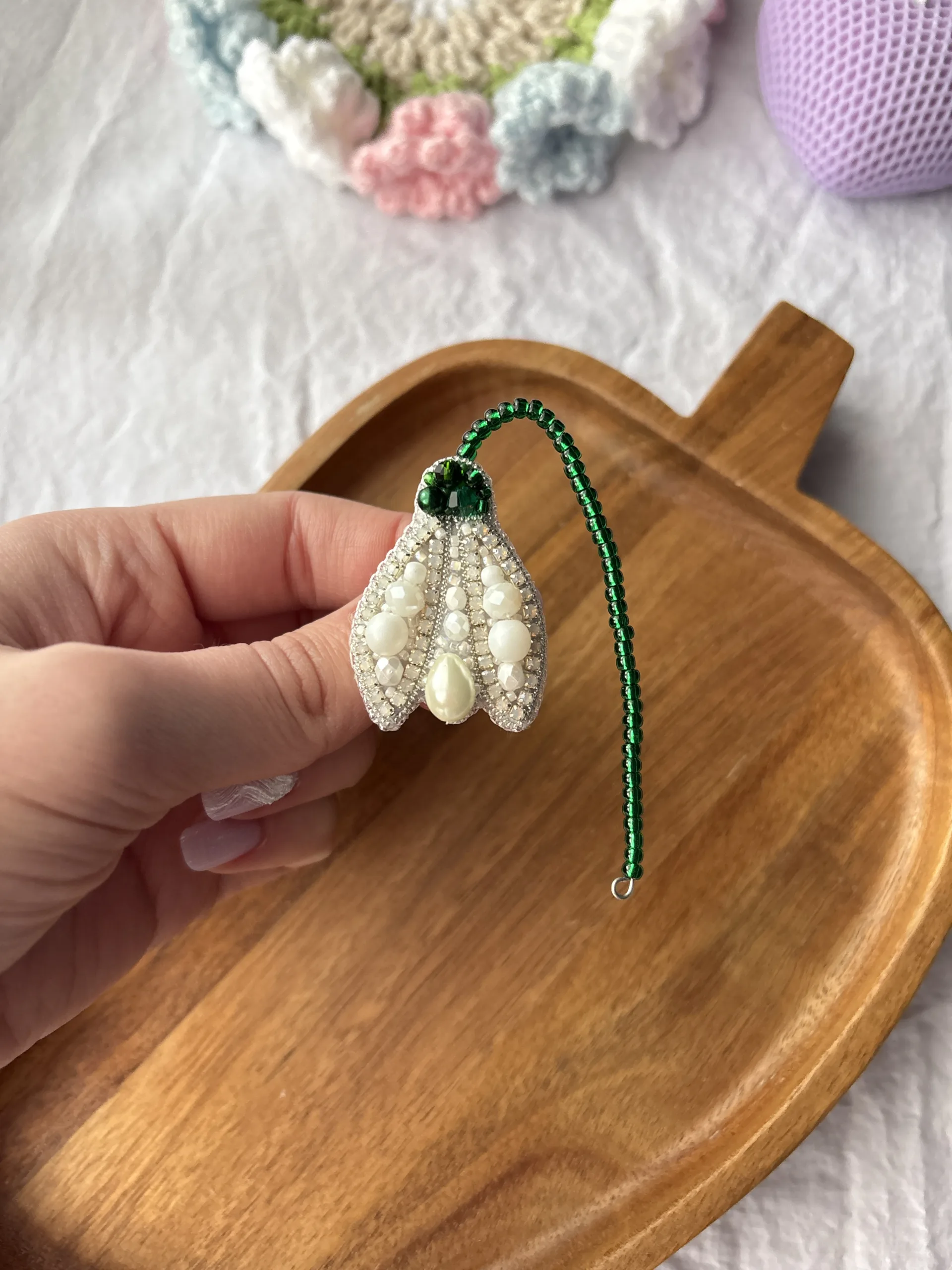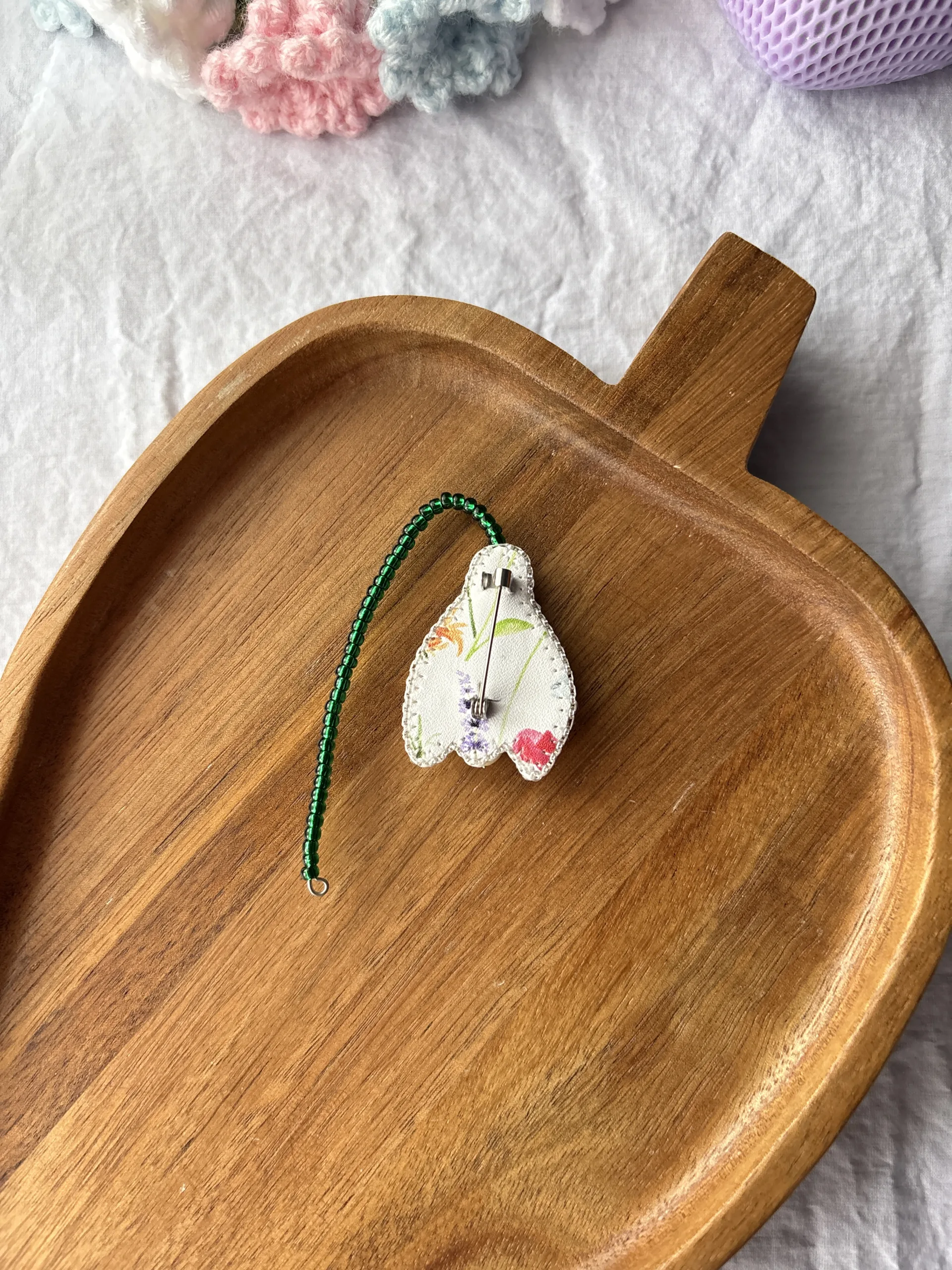 Materiale: fetru, cristale sticlă, mărgele toho, perle de sticlă, fire polish, ac broșă din oțel inoxidabil, piele ecologică.