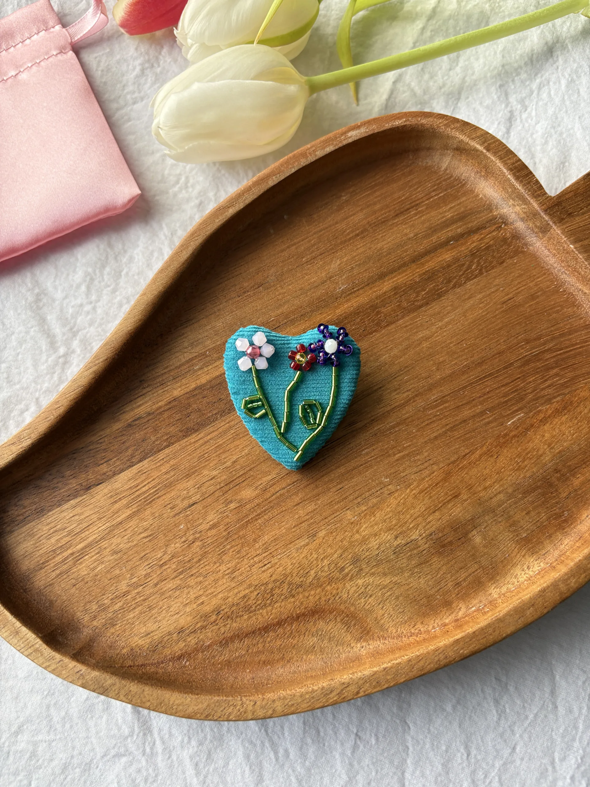 Broșă Inimă Catifea Albastră