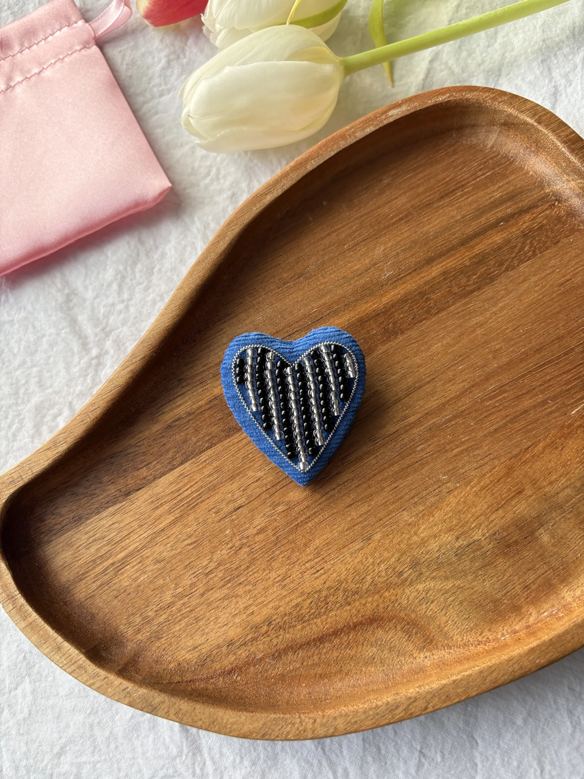 Broșă Inimă Catifea Albastru Royal