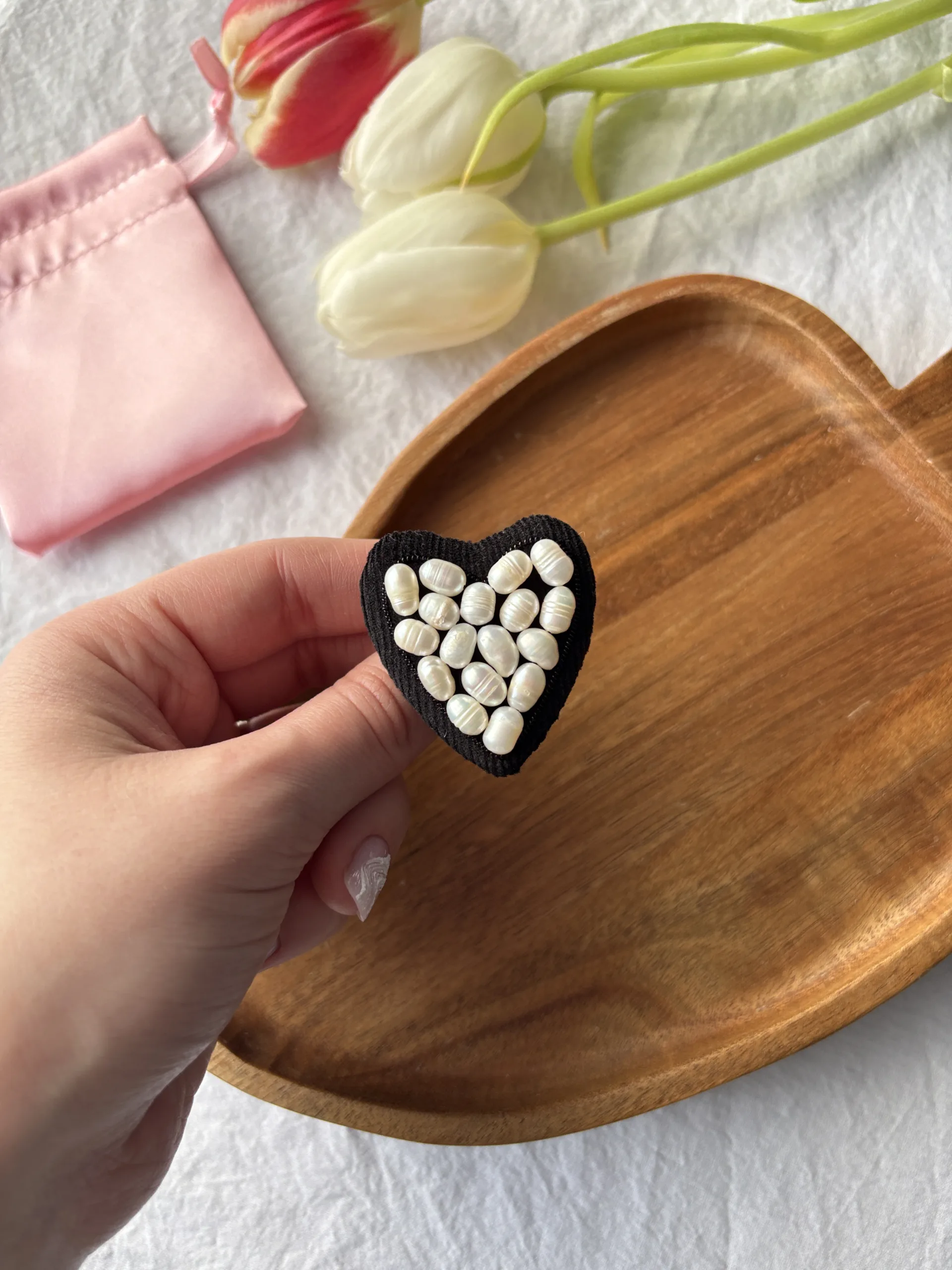 Materiale: catifea bumbac 100%, perle de cultură, ac broșă din oțel inoxidabil. Broșa vine împachetată într-un săculeț din satin și cutiuță personalizată.