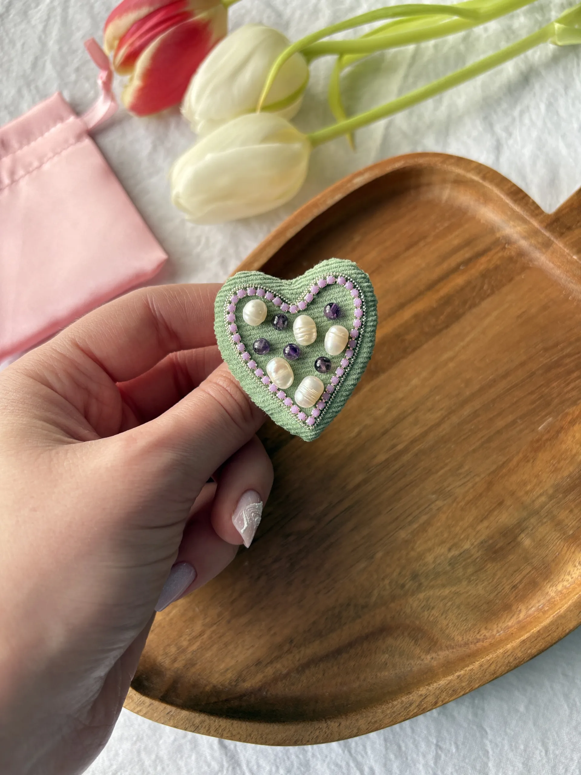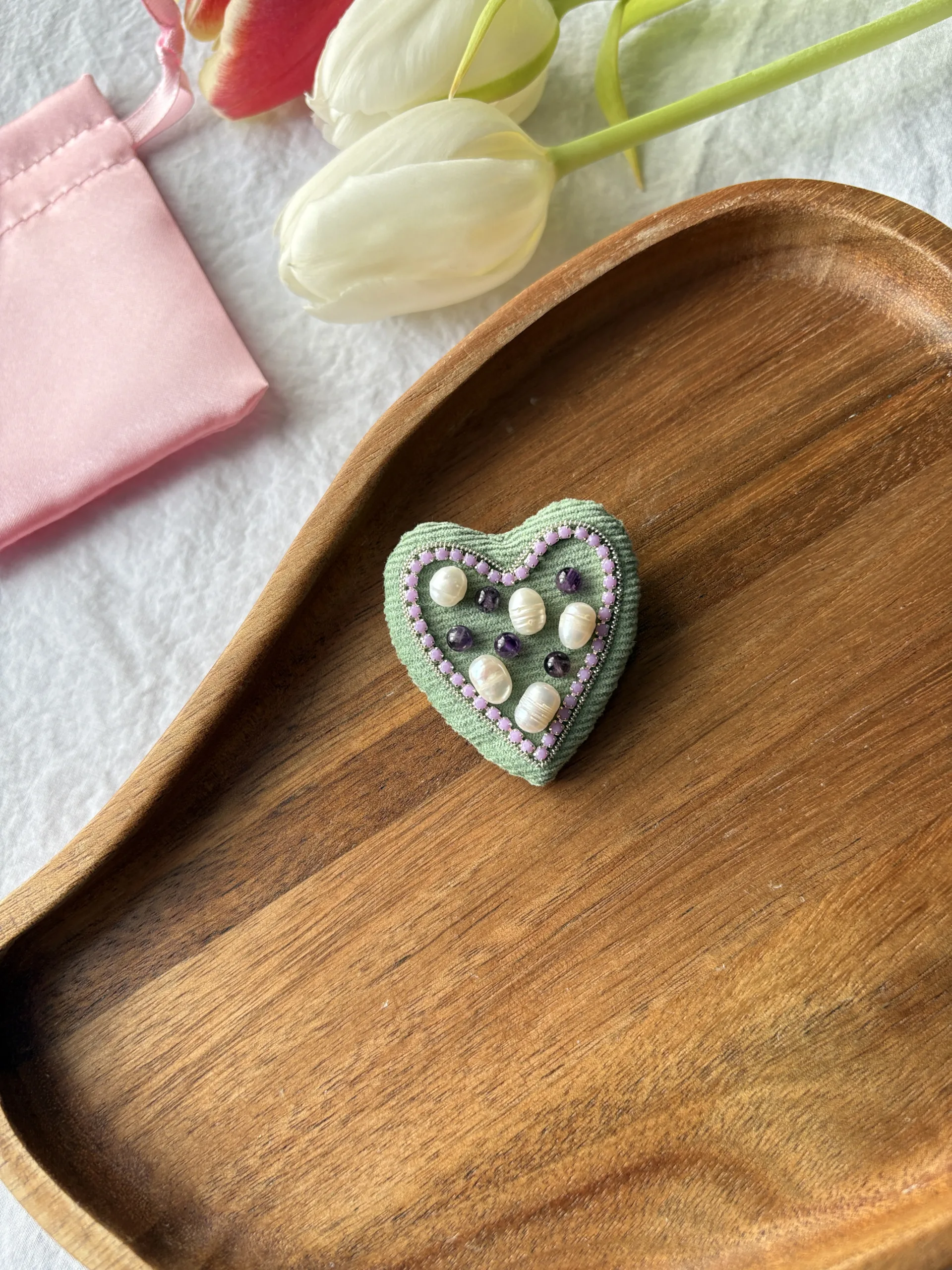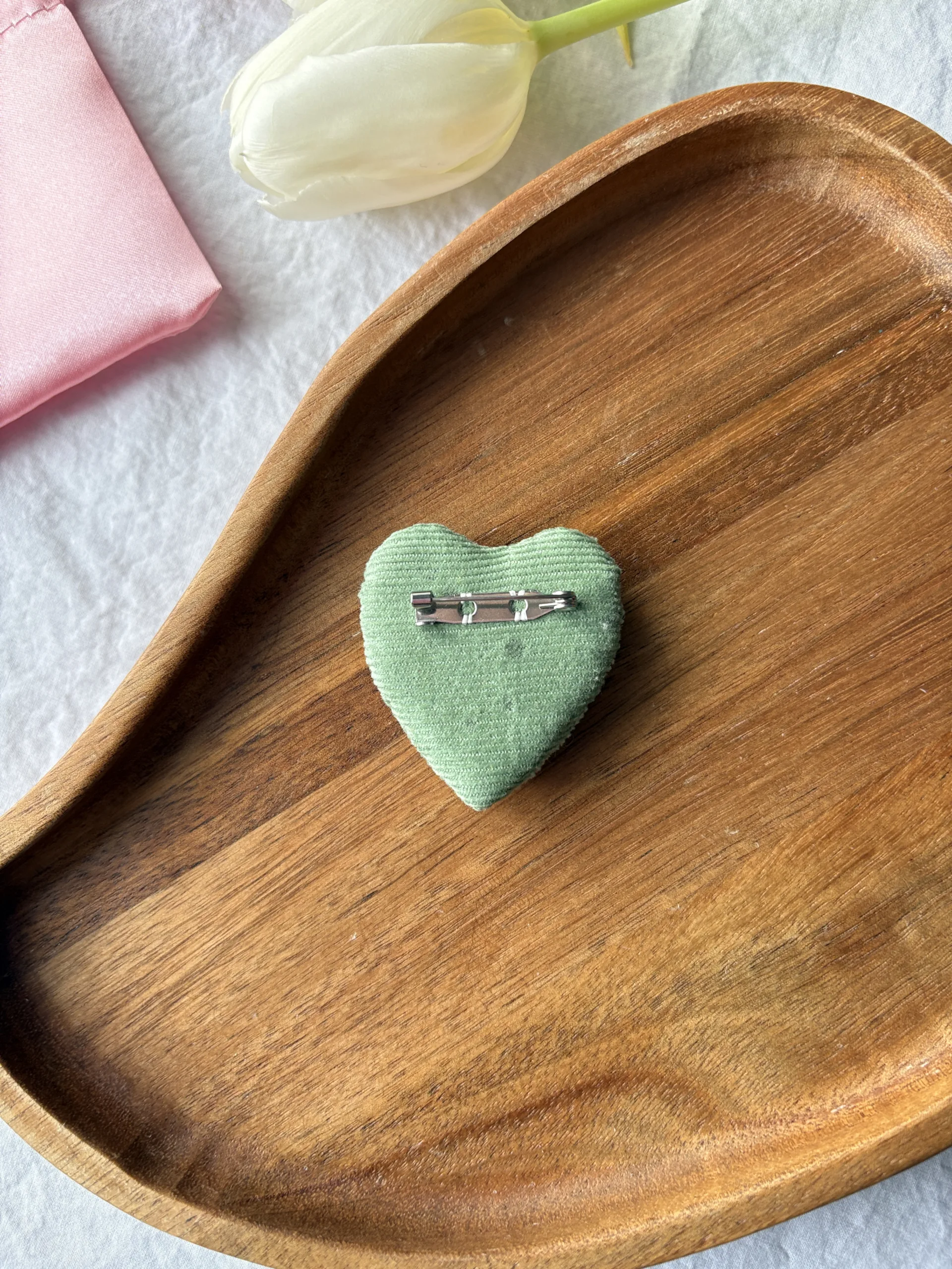 Broșă Inimă Catifea Verde