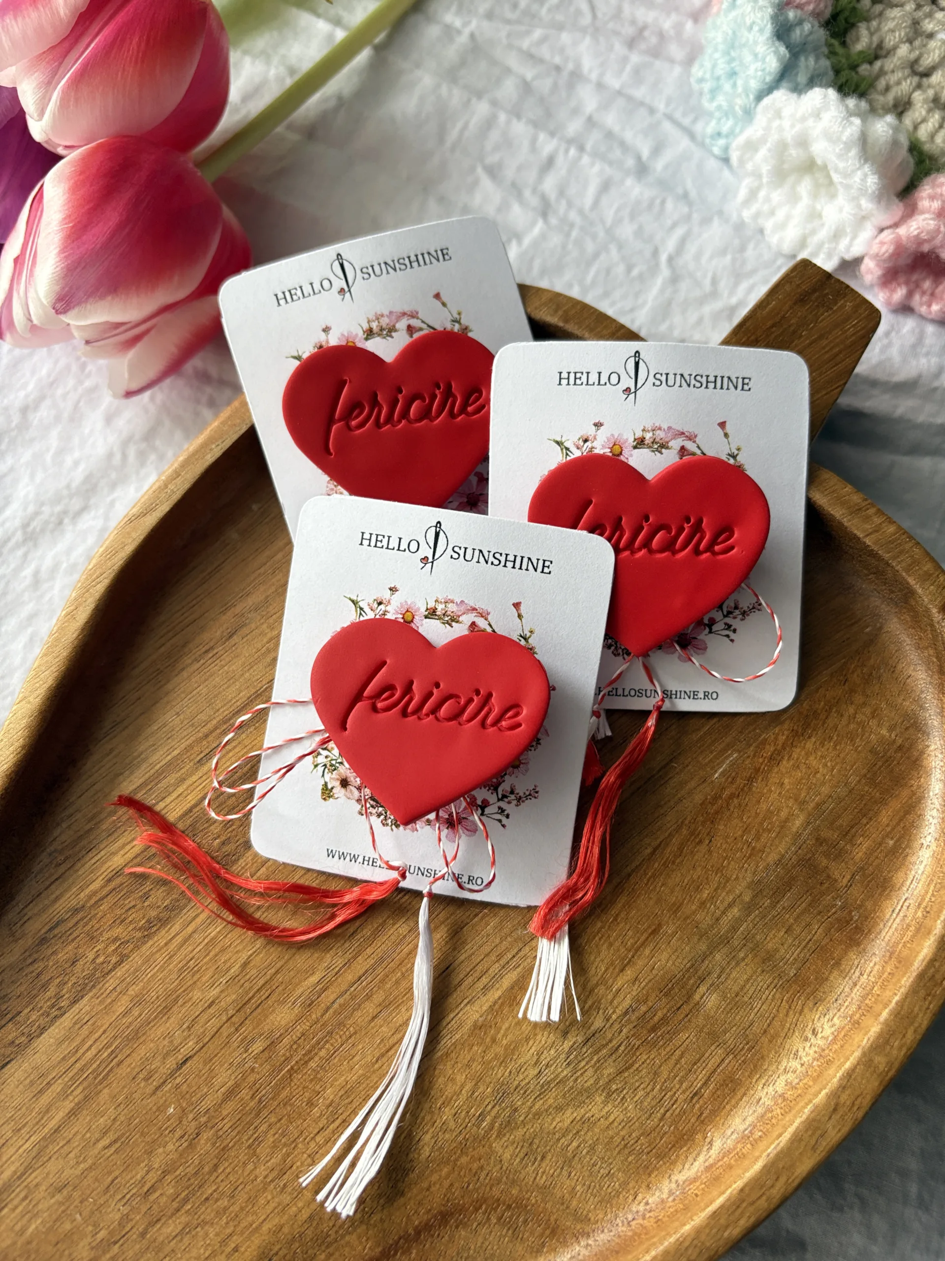 Materiale: Broșa este realizată manual din lut polimeric. Baza broșei este confecționată din metal comun, de aceea se recomandă evitarea contactului cu umiditatea.Bijuteria este montată pe un cartonaș cu șnur de mărțișor și ambalată într-o punguță transparentă din celofan.