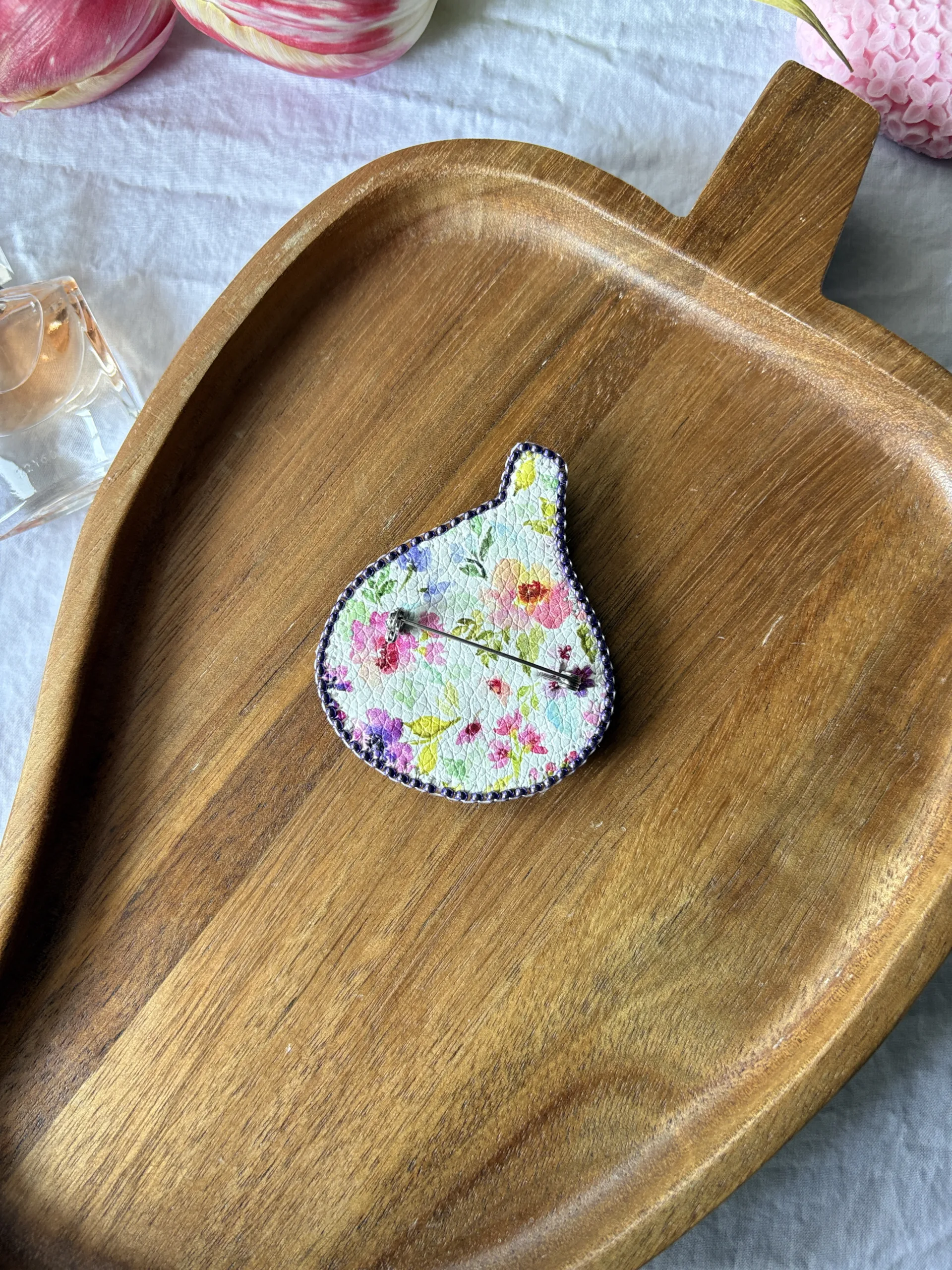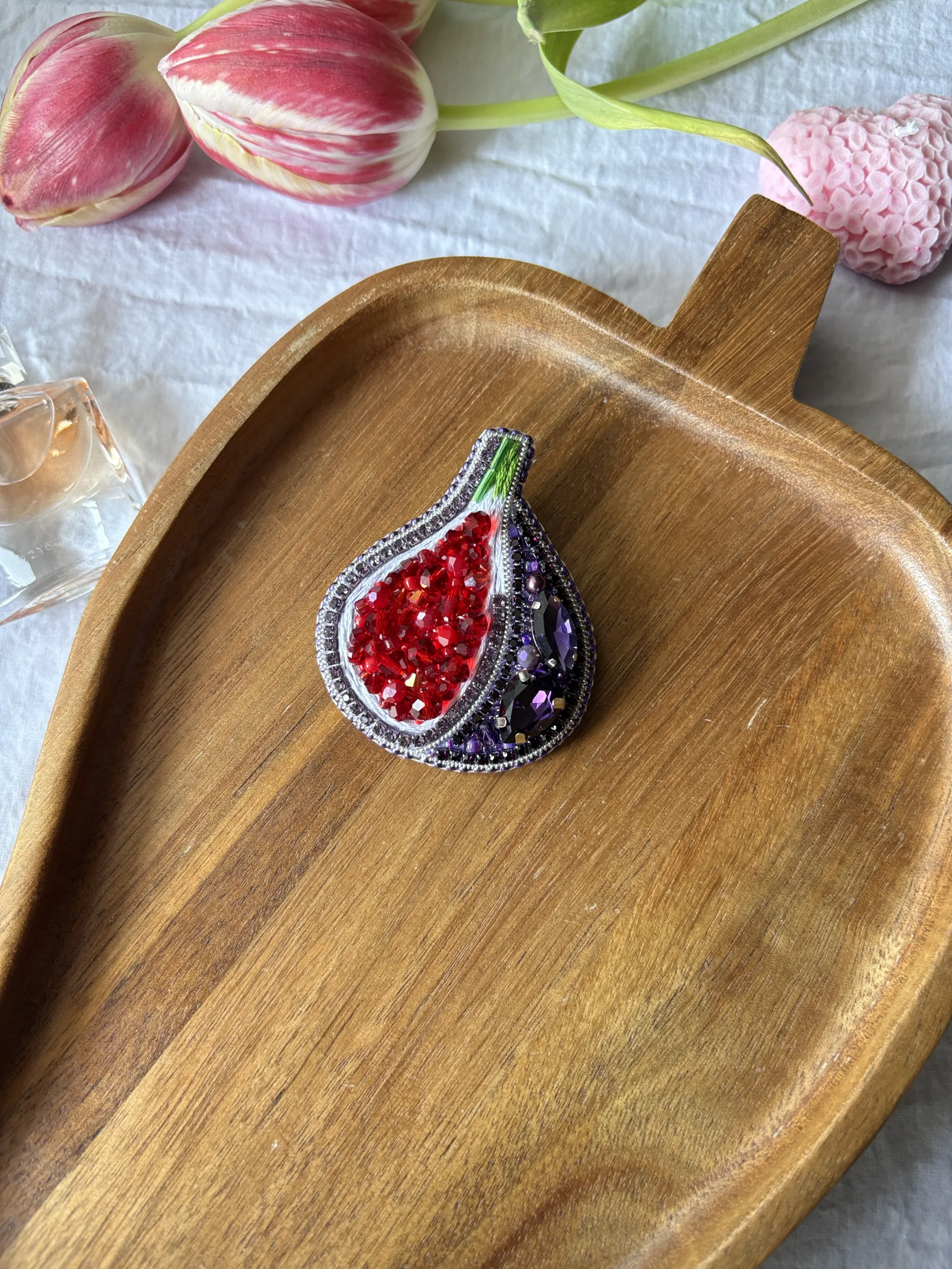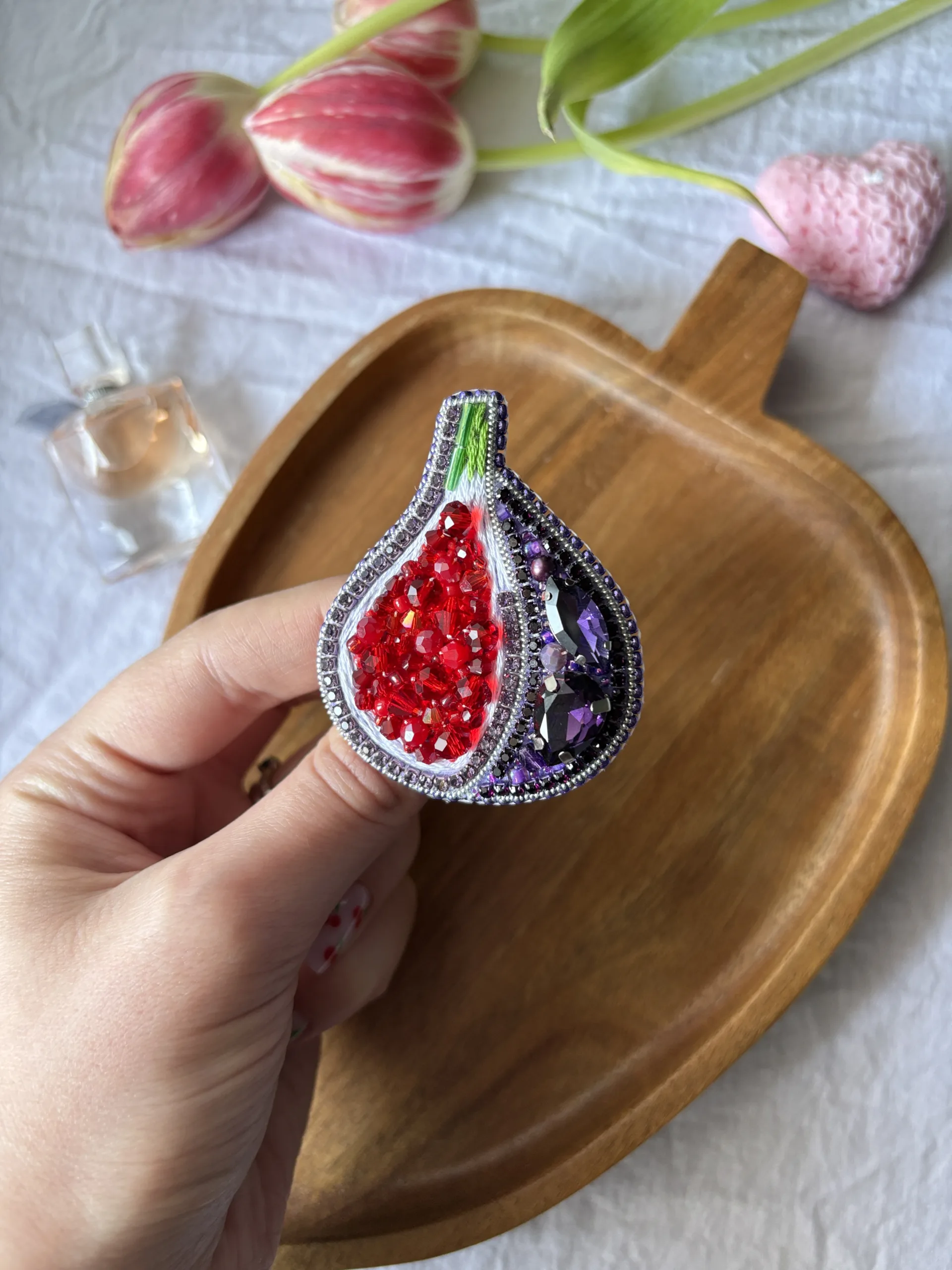 Materiale: fetru, cristale sticlă, mărgele toho, perle de sticlă, fire polish, ac broșă din oțel inoxidabil, piele ecologică.Broșa vine împachetată într-un săculeț din satin și cutiuță personalizată.
