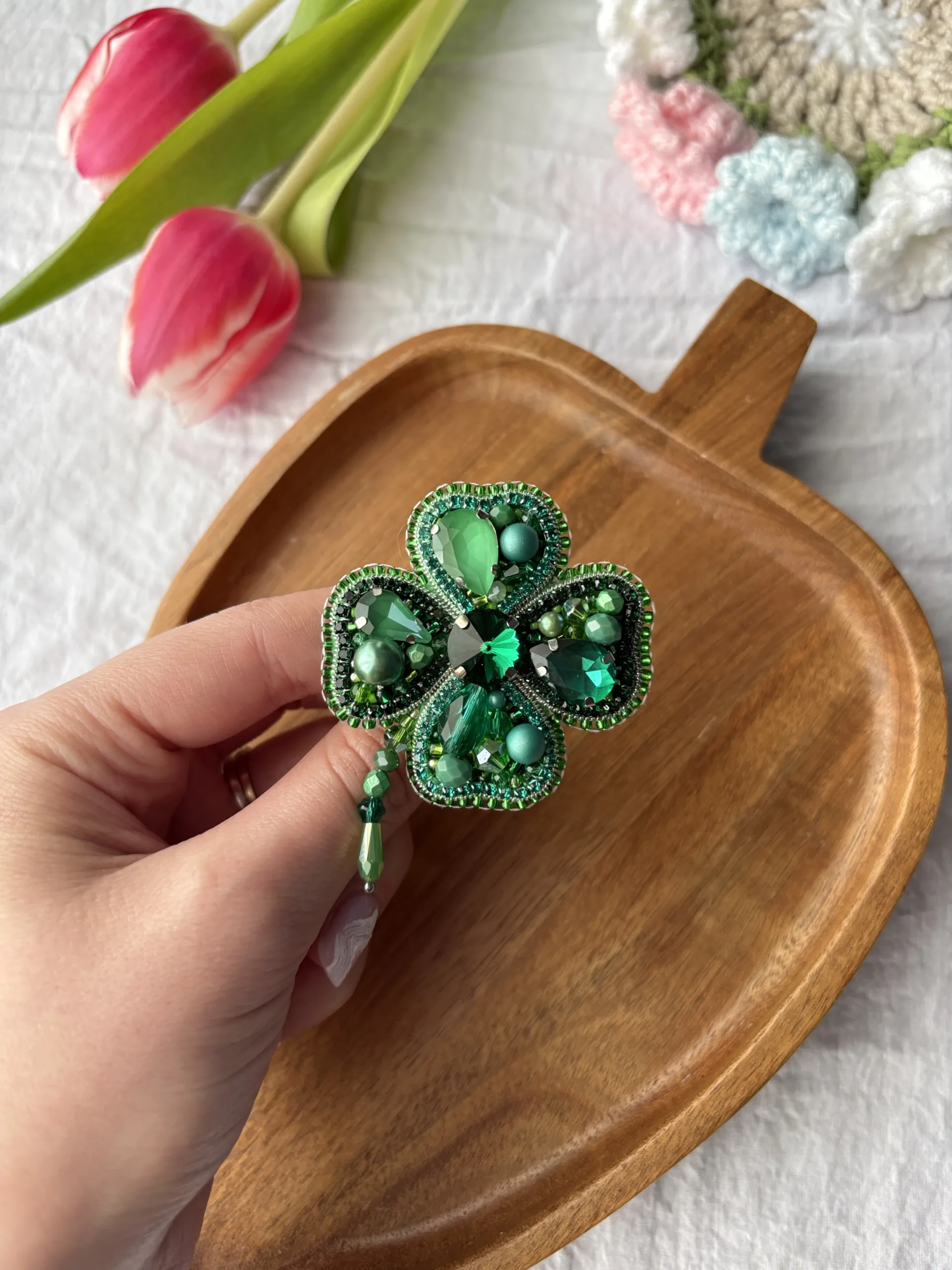 Broșă Trifoi verde