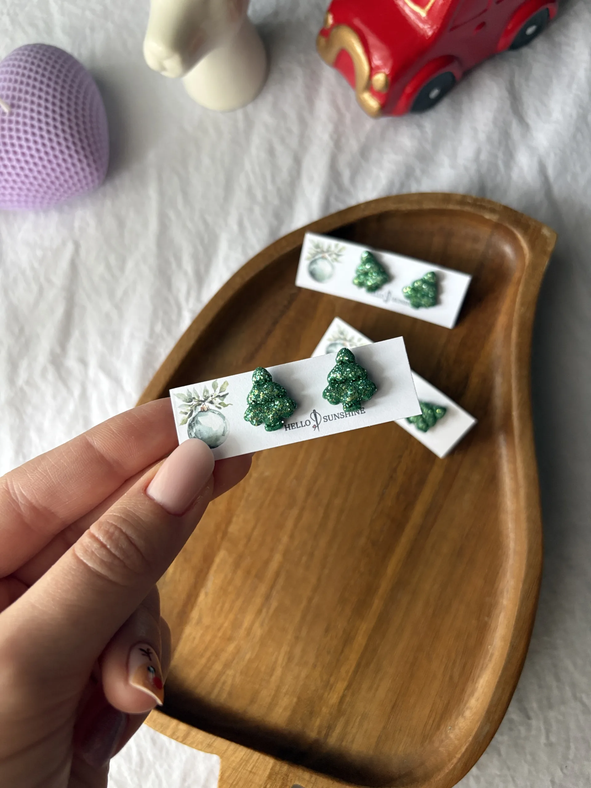 Cerceii sunt realizați manual din lut polimeric și acoperiți cu sclipici verde. Baza cerceilor este din oțel inoxidabil.