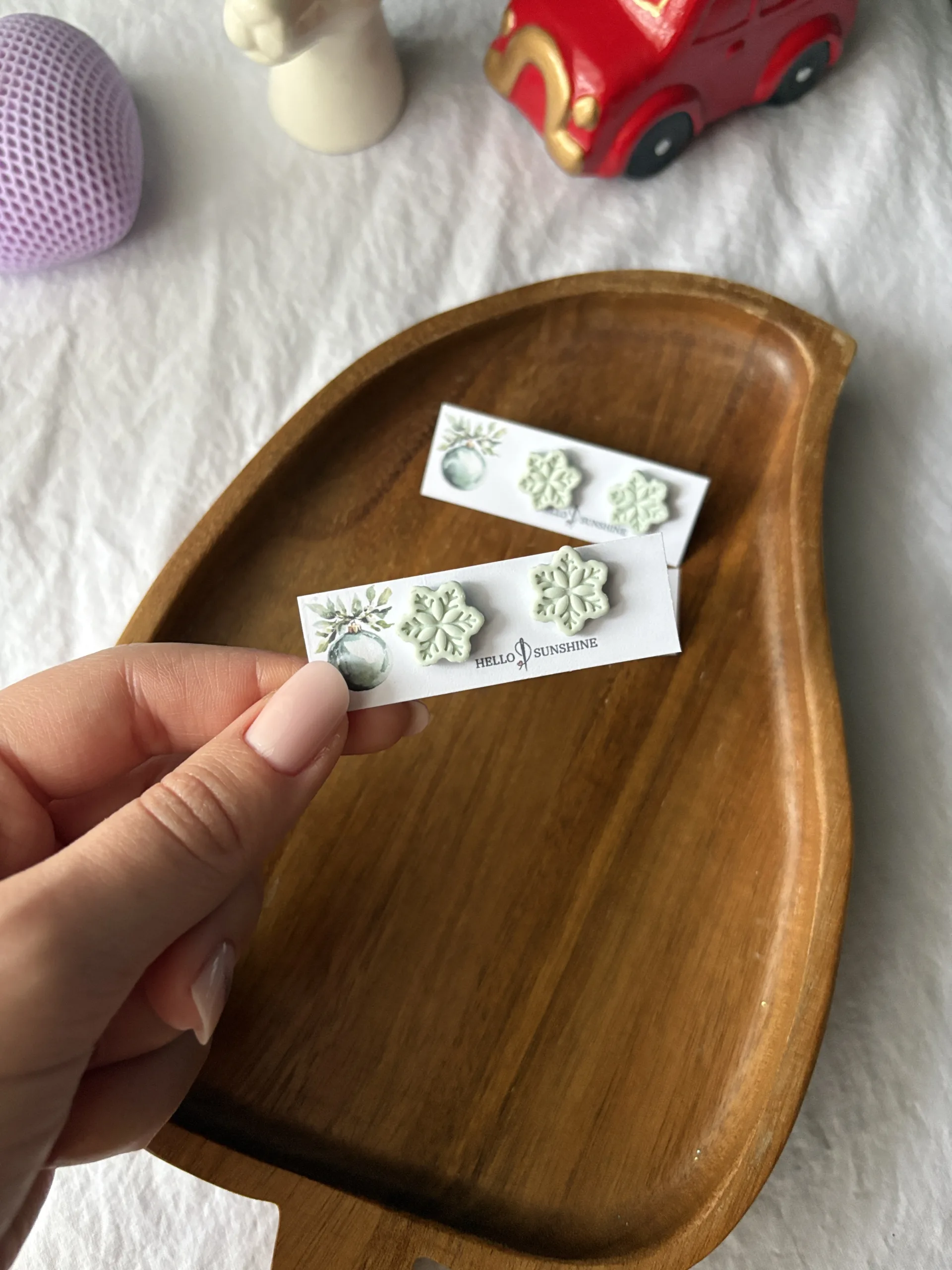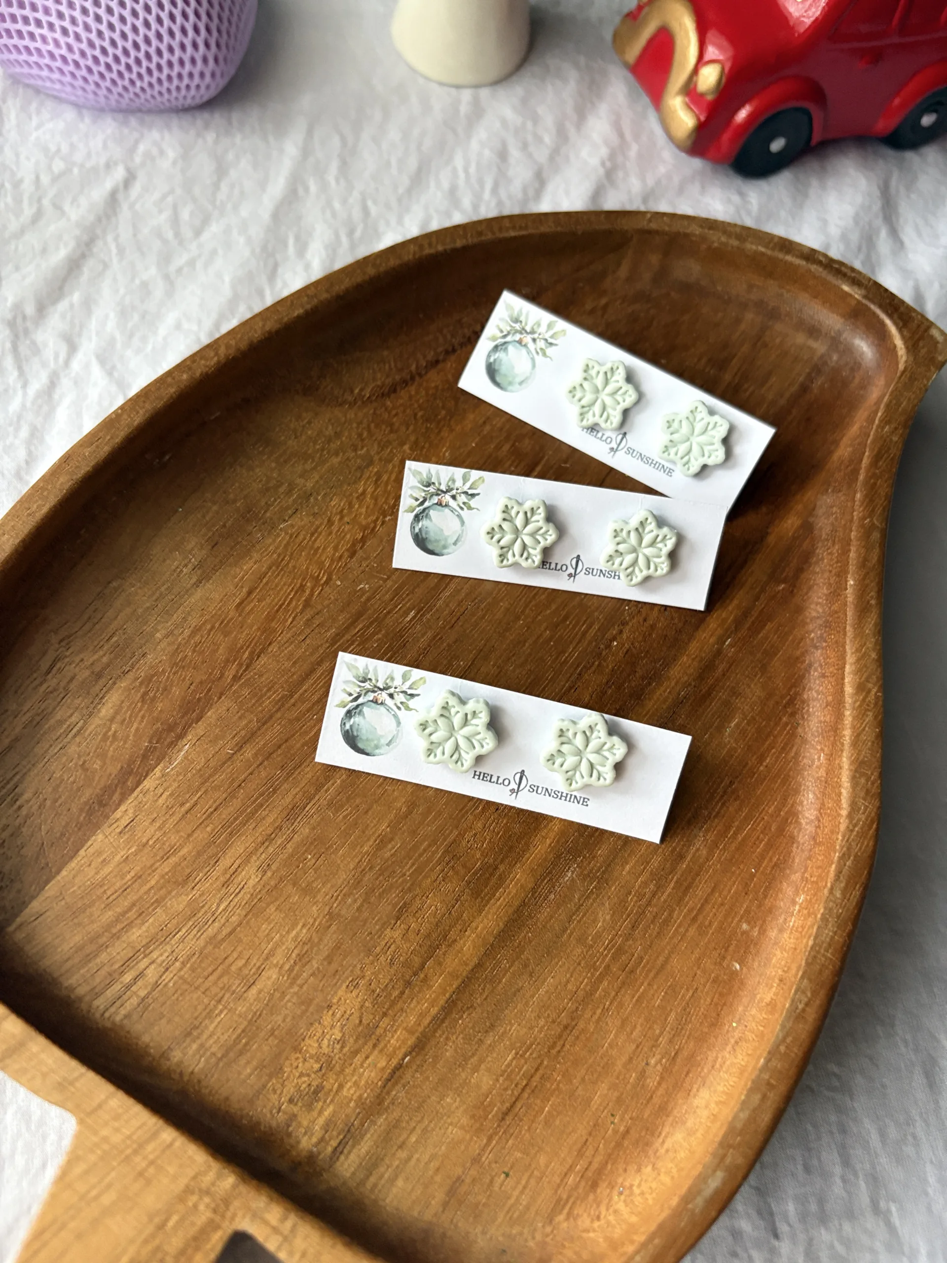 Cerceii sunt realizați manual din lut polimeric. Baza cerceilor este din oțel inoxidabil.