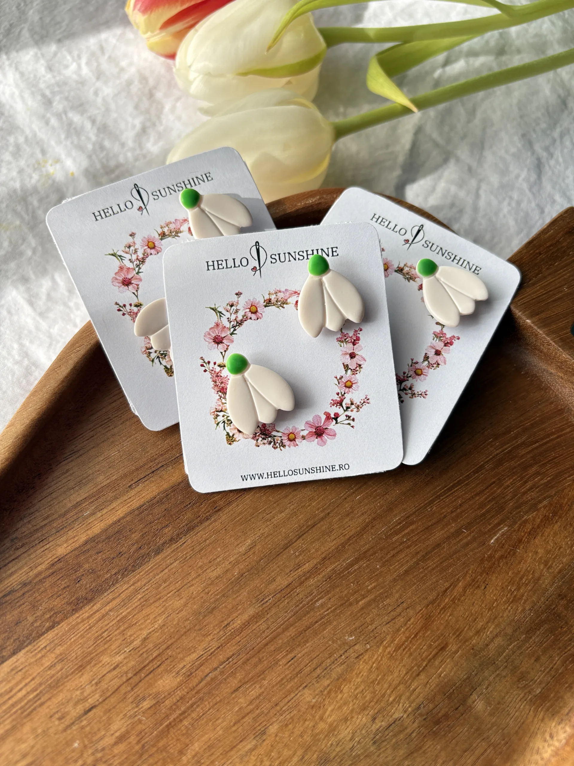 Materiale: Cerceii sunt realizați manual din lut polimeric. Baza cerceilor este confecționată din oțel inoxidabil. Bijuteria este montată pe un cartonaș și ambalată într-o punguță transparentă din celofan.