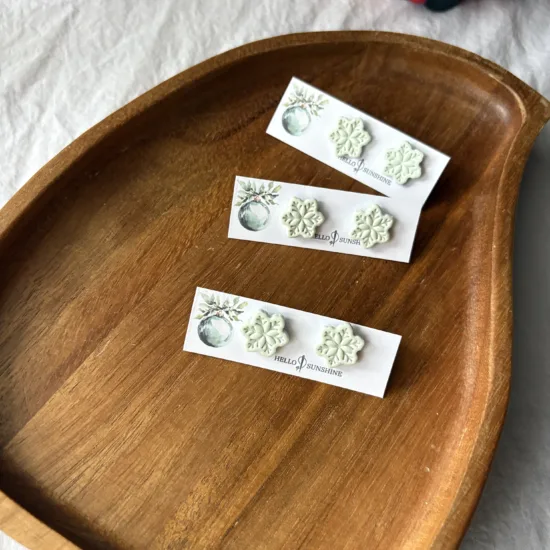 Materiale: Cerceii sunt realizați manual din lut polimeric. Baza cerceilor este confecționată din oțel inoxidabil. Bijuteria este montată pe un cartonaș și ambalată într-o punguță transparentă din celofan.