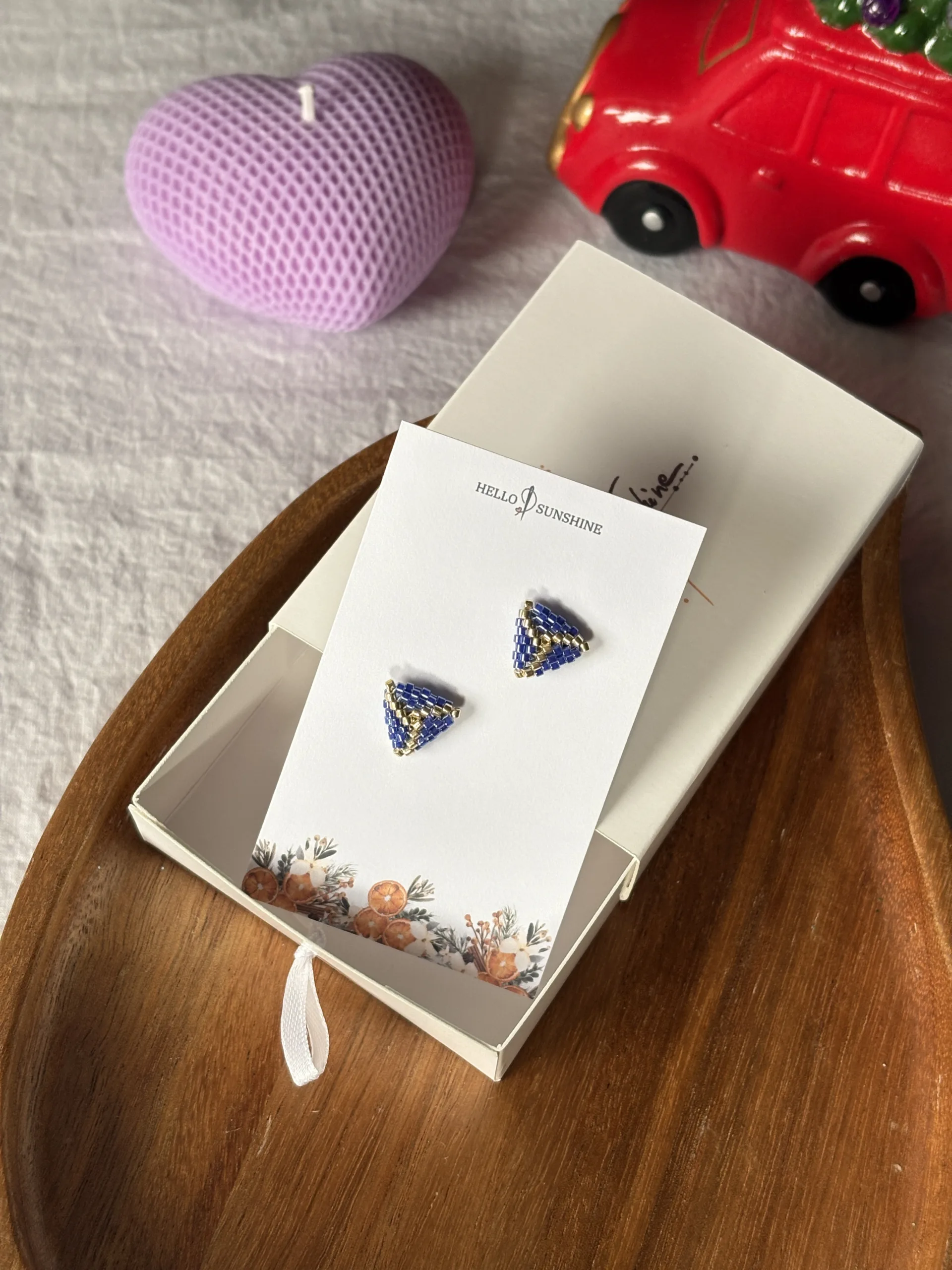 Cercei Triunghi Albastru-auriu